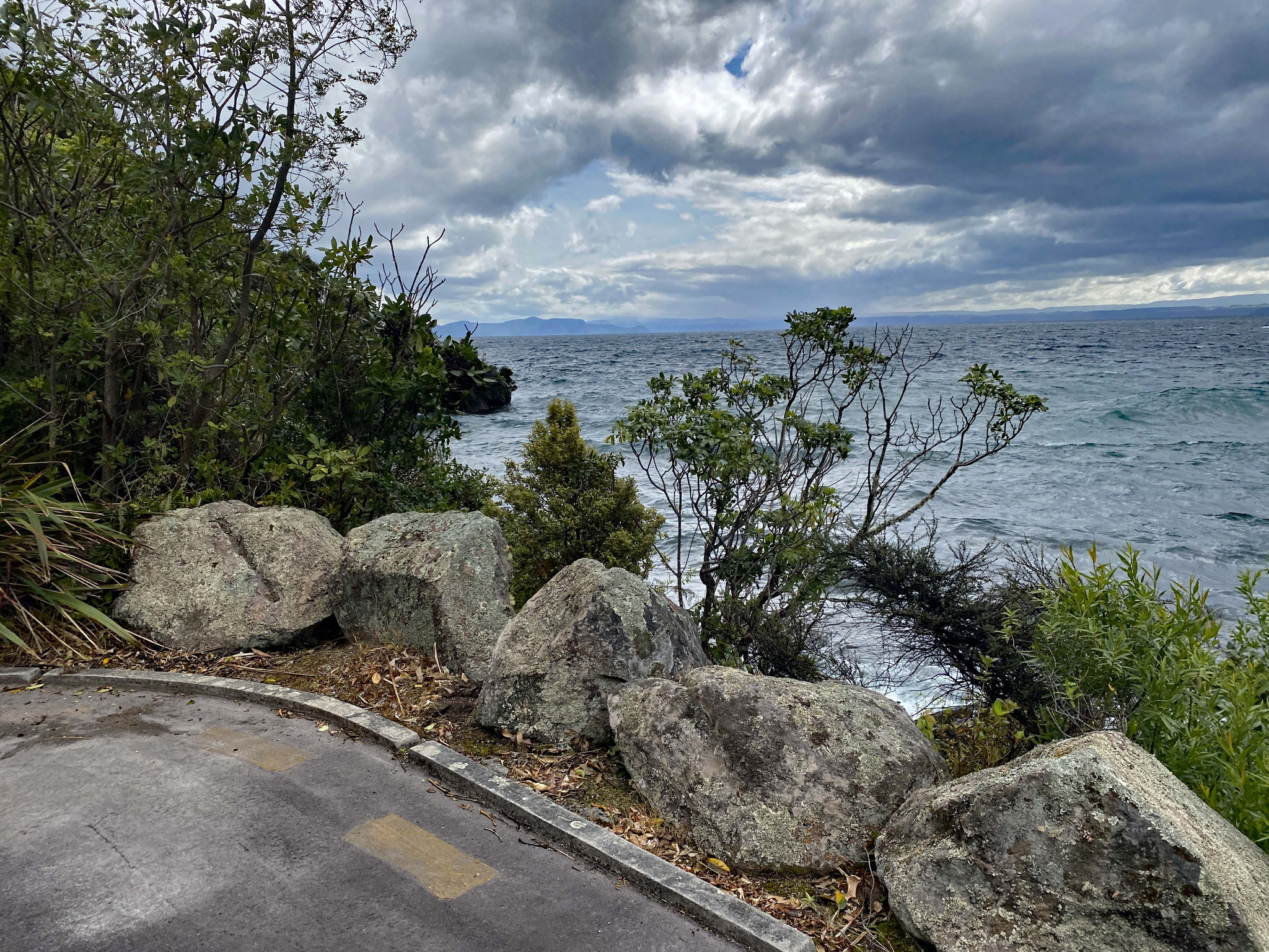 Mit Jane unserem nächsten Host habe ich bereits über WhatsApp kommuniziert, und wir haben einen Treffpunkt am Taupo See vereinbart um 14:00. Tatsächlich sind wir bereits um 12:30 in Taupo am See. Die Fahrt war absolut problemlos und gemütlich. Ab und an geht es wegen Straßenarbeiten etwas langsamer, aber immer nur auf einer kurzen Strecke.