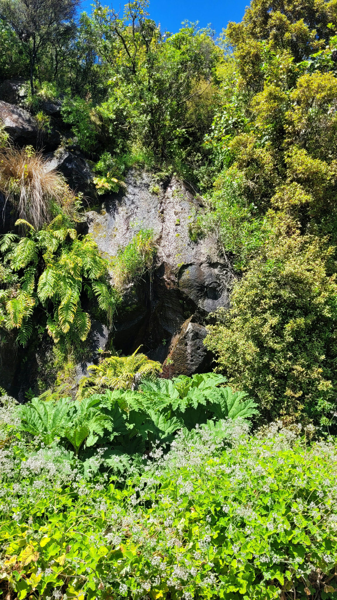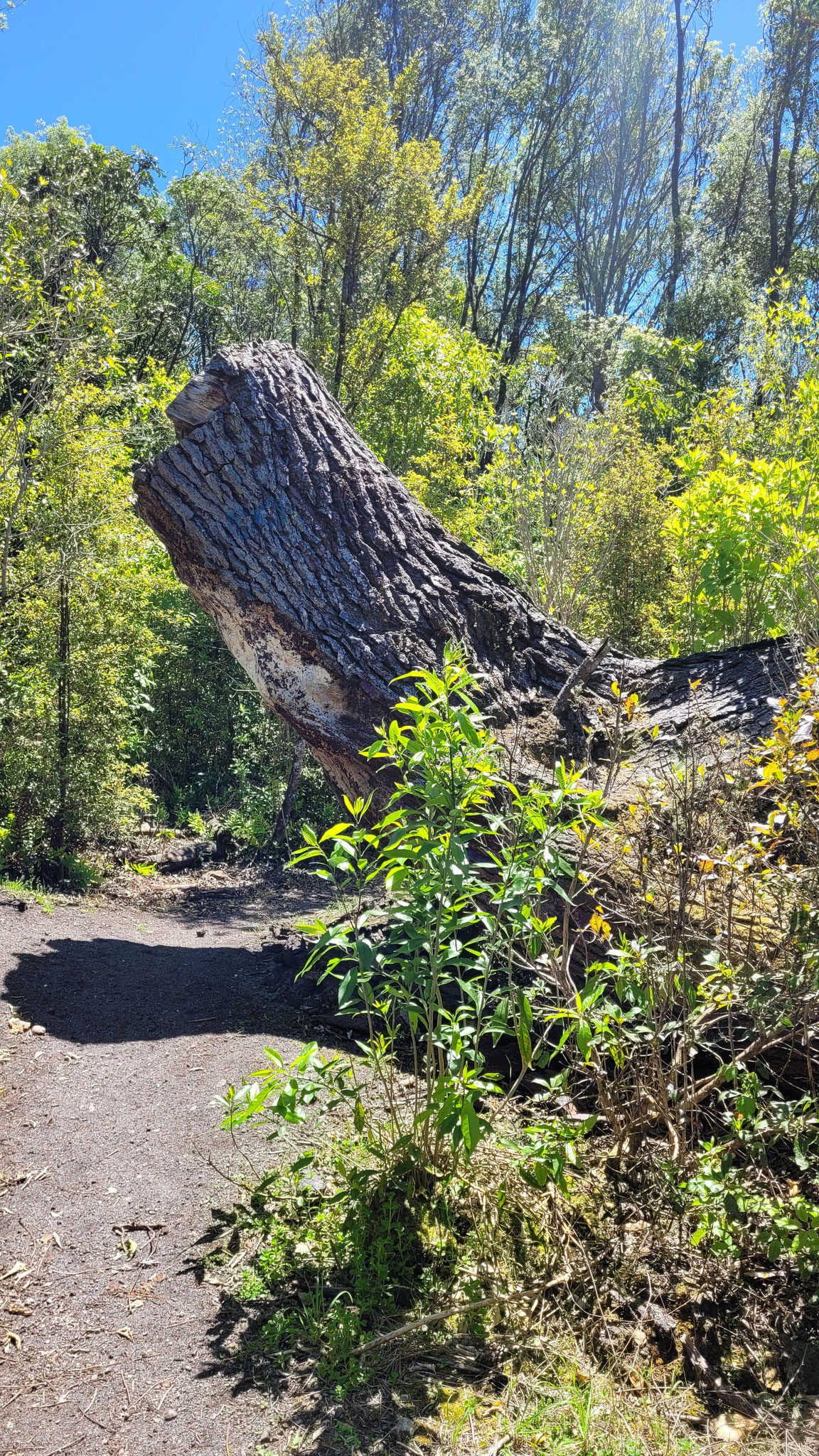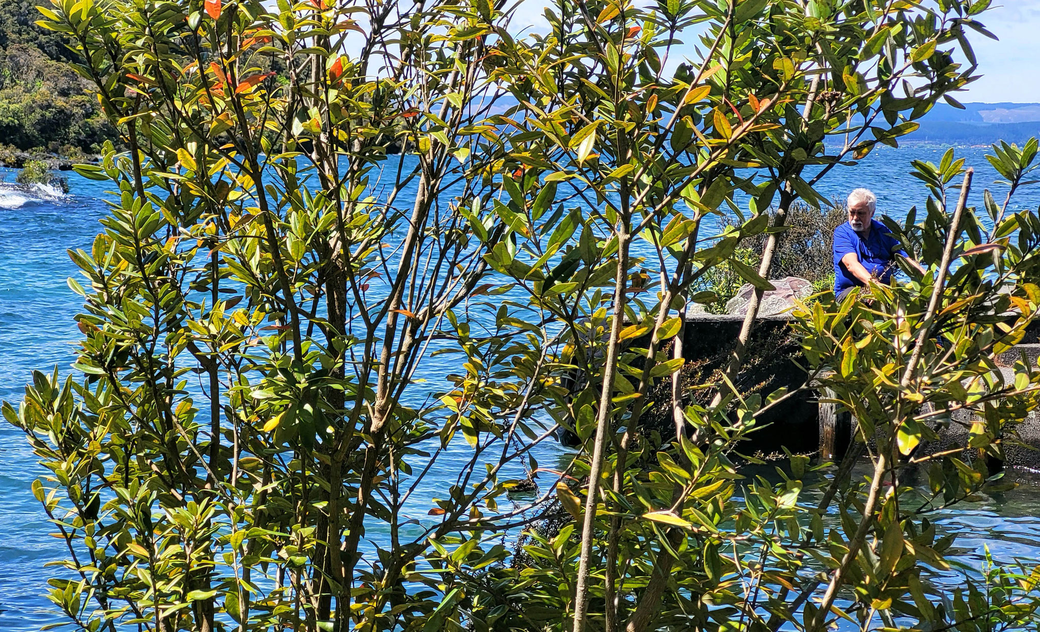 Nach ca. 1-1/2 Stunden ist Margit auch wohlbehalten zurück. Unterwegs hat sie eine Höhle, riesige Bäume und eine schon etwas verwitterte Maoristatur direkt am See entdeckt. Es war ein toller Trail. Sie macht auch eine Pause, und fängt dann an wieder unseren Koffer zu packen. Danach fahren wir in den Ort.