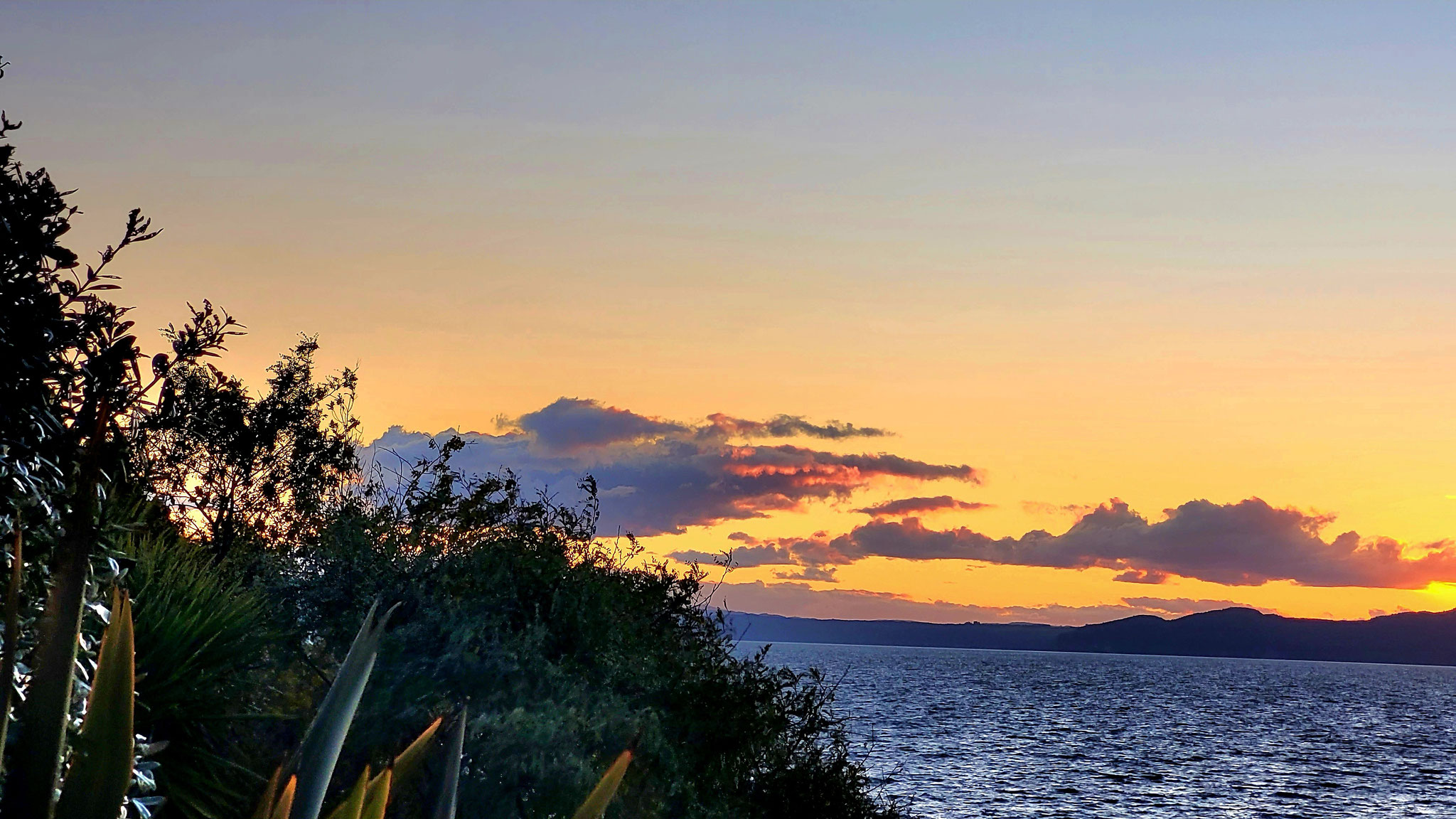 Wir sind rechtzeitig zurück, denn Mark und Jane wollen sich zusammen mit uns den Sonnenuntergang von der Terrasse des Hauses an ansehen, zusammen mit einem Glas Wein. Die beiden sind wirklich unwahrscheinlich nett, und es tut uns leid dass wir morgen schon abreisen. Eine Mitarbeiterin von unserem Reisebüro ist heute hier auch zu Gast. Angela kommt aus Bad Vilbel und sucht im Auftrag von Travel Essence verschiedene Unterkünfte auf, um diese zu bewerten. Bei einem Glas Wein warten wir auf den Sonnenuntergang, der heute allerdings nicht sehr spektakulär ausfällt. Zeit fürs Bett.