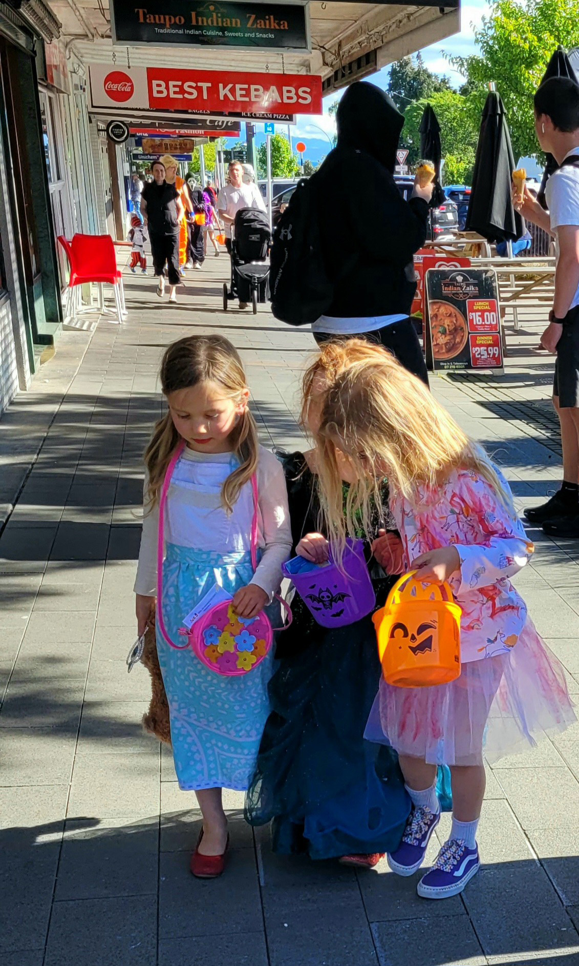 Margit sucht nach bestimmten Tabletten, von denen sie nicht genügend mitgenommen hat. In Taupo ist heute high-live. Viele Kinder sind mit Masken und Verkleidung unterwegs. Halloween ist hier auch eine große Sache, vor allen Dingen für die Kinder. In der Apotheke können uns die Leute leider nicht helfen, die nicht weit entfernte homöopathisch bestückte Drogerie, die uns empfohlen wurde, ist bereits geschlossen.