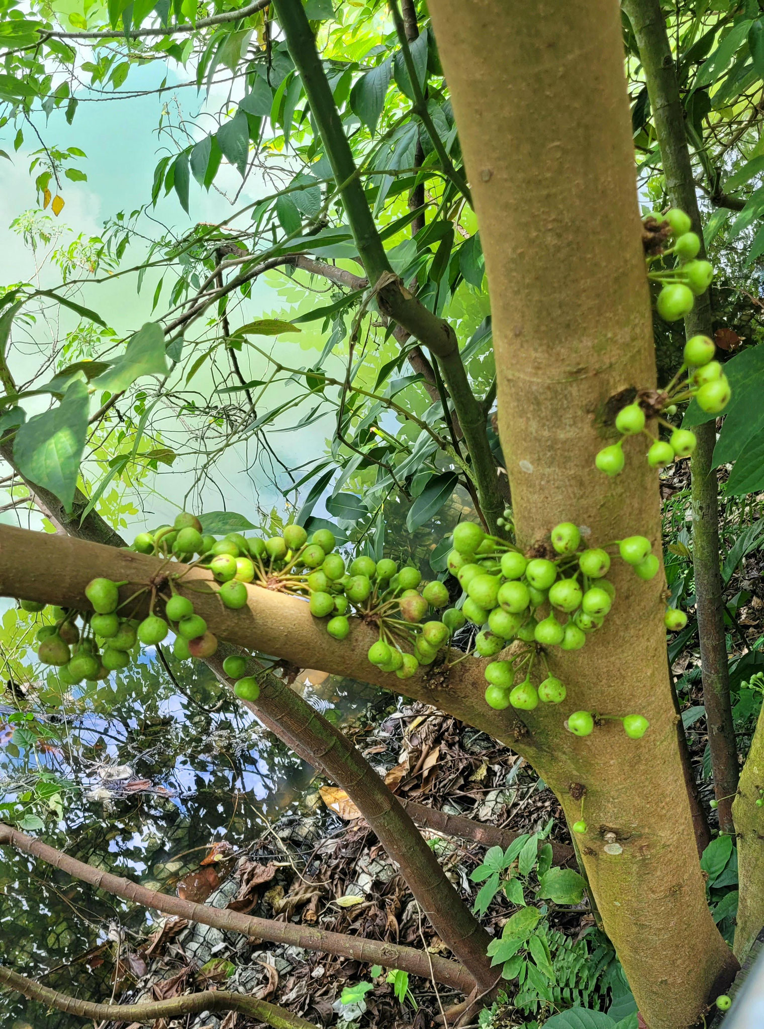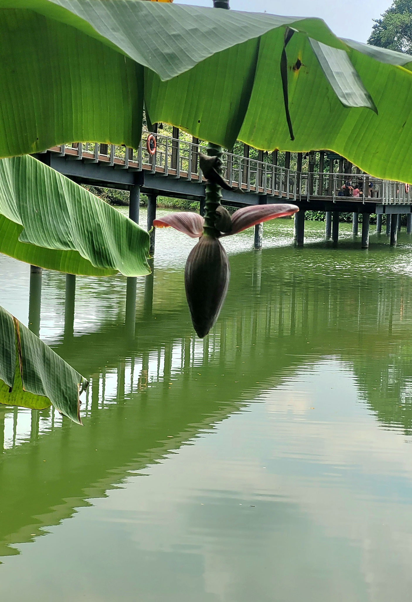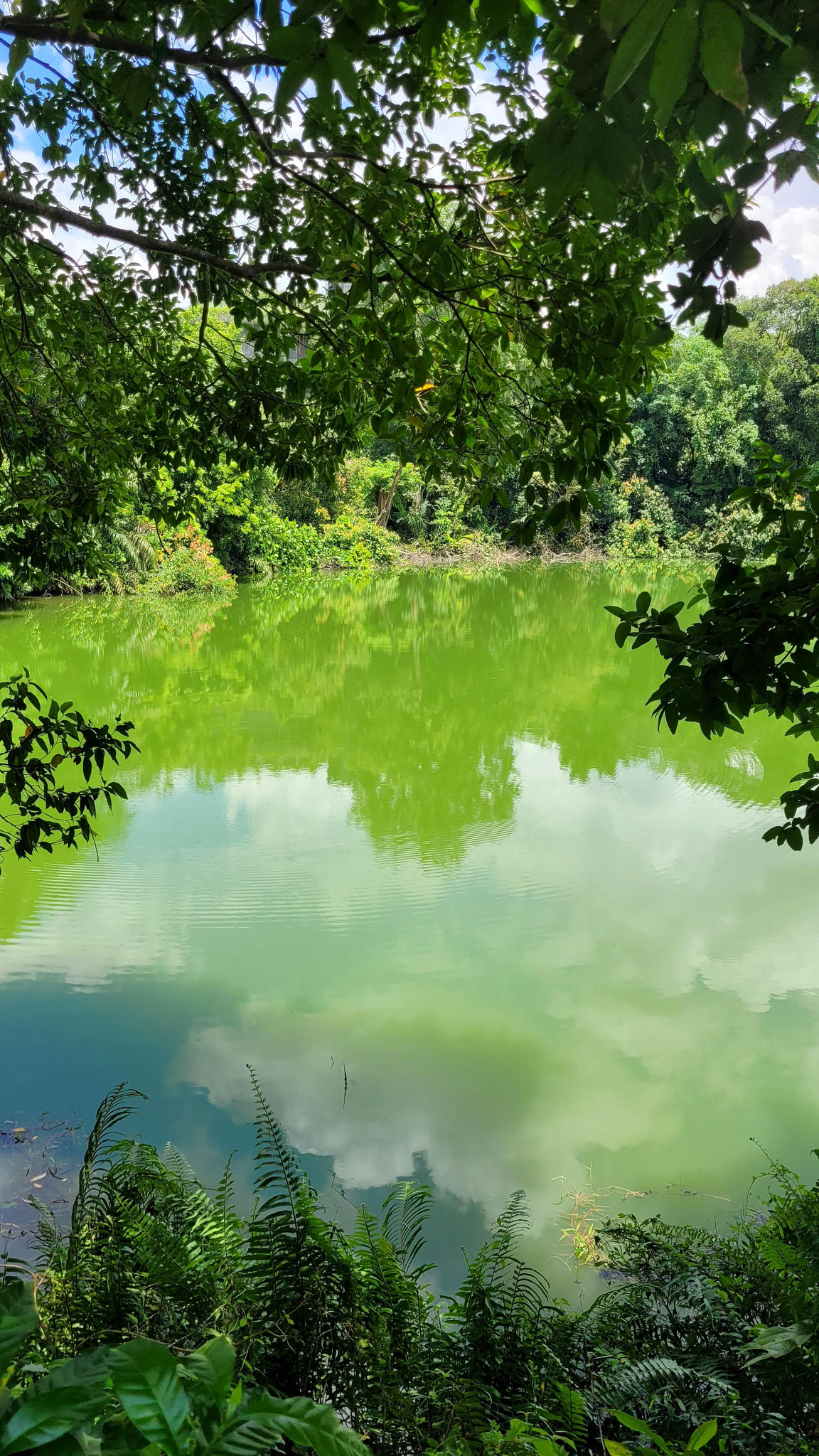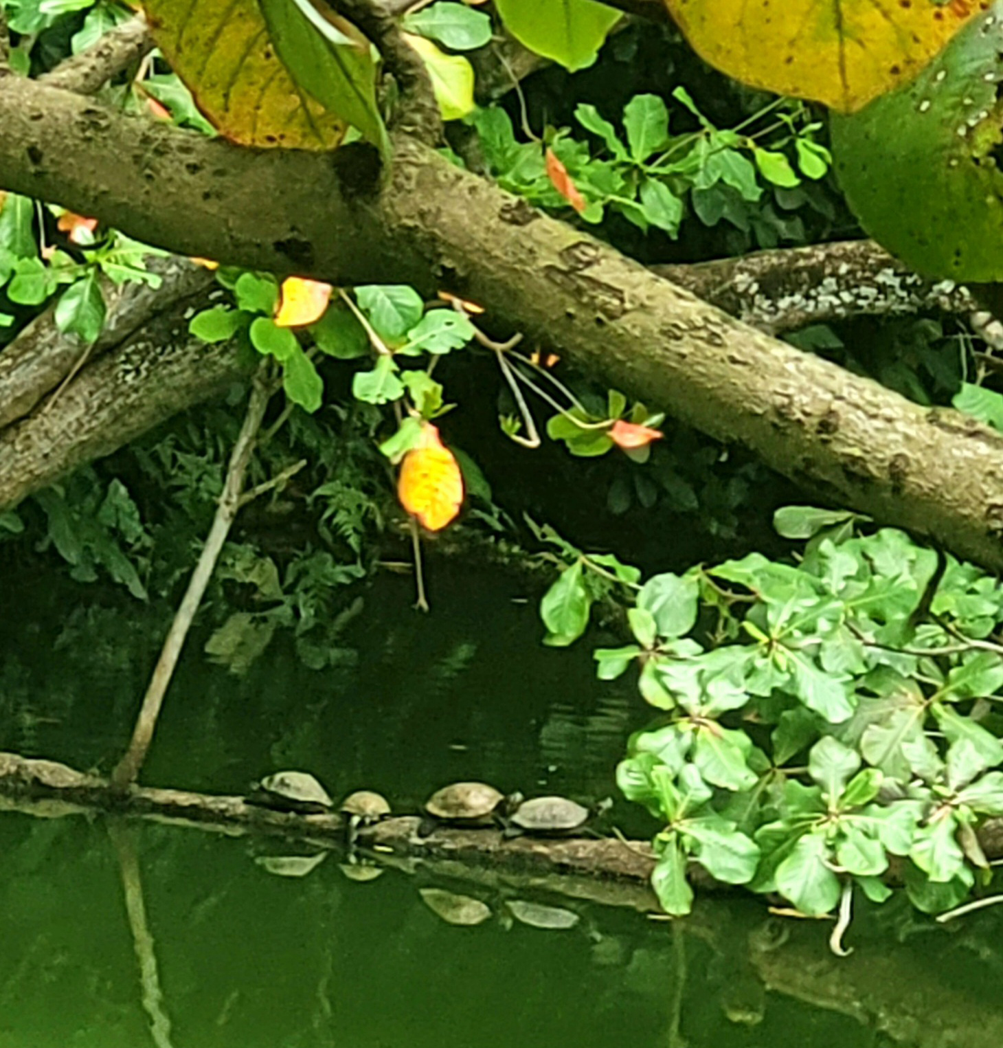Bei mir geht die Schwitzerei sofort wieder los, schon bald stehe ich unter Wasser, und für mich macht das keinen Spaß mehr. Die Hitze und Luftfeuchtigkeit sorgt bei mir für eine heftige Verspannung, und das Laufen wird immer schwieriger, obwohl es hier keine Steigungen gibt, und der Weg wunderbar gepflegt ist. Zum Glück finden wir von Zeit zu Zeit einen Sitzplatz im Schatten, wo ich immer eine Pause einlegen muß.