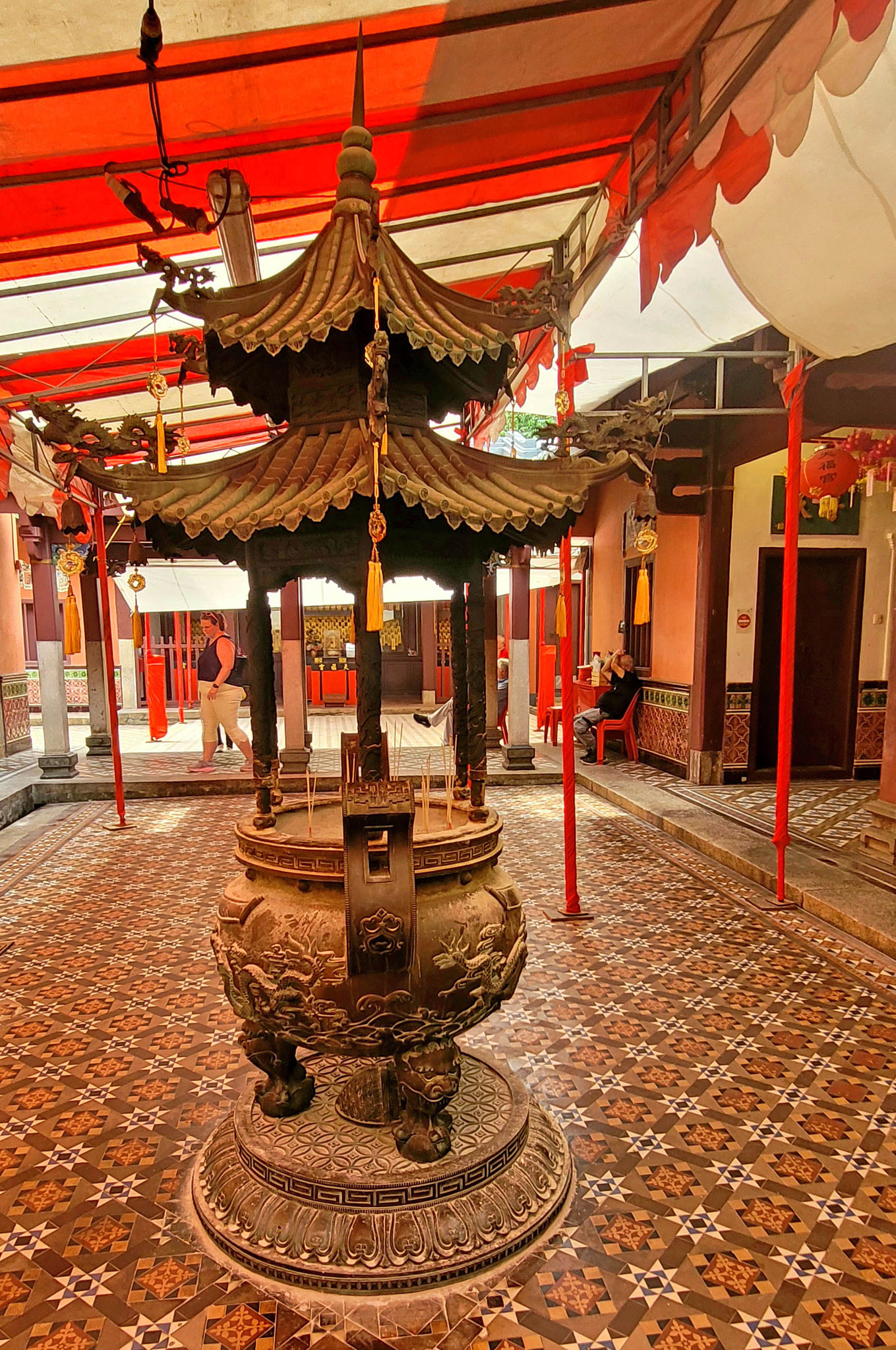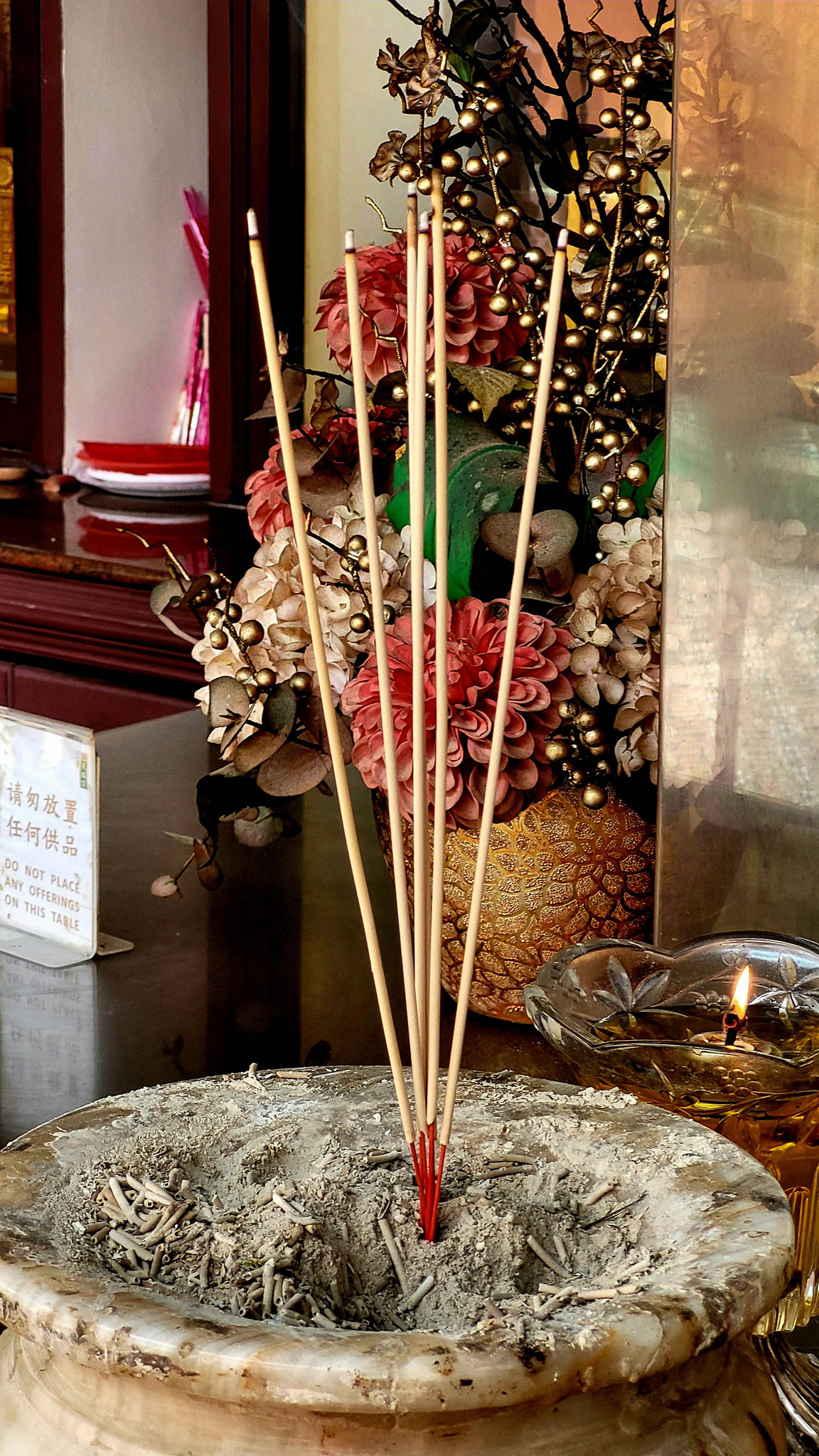 Ein ganz schöner Tempel, damit haben wir 3 Tempel aud verschiedenen Religionsrichtungen gesehen. Margit zündet hier ein paar Räucherstäbchen an, die kostenlos zur Verfügung gestellt werden.