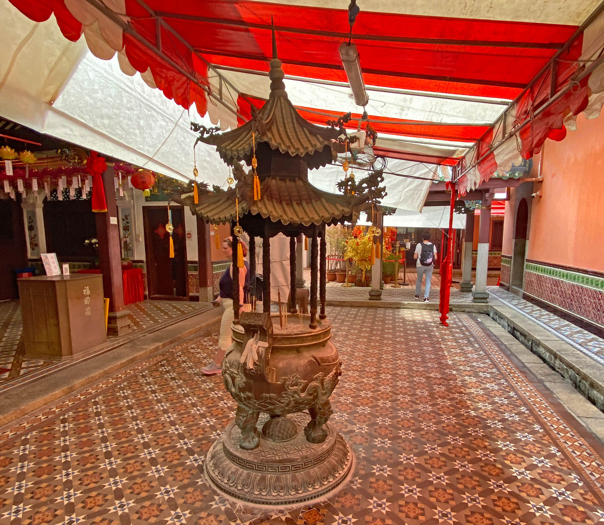 Heute den Tag nutzen wir um uns einen weiteren Tempel und das National Museum anzusehen. Bei dem Tempel handelt es sich um den Thian Hock Keng Tempel. Ein Taoistischer Tempel, der stark von der Bevölkerungsgruppe aus China geprägt wird. Weit müssen wir nicht laufen, in der Telok Ave. sind wir schon mal an dem Tempel vorbeigekommen.