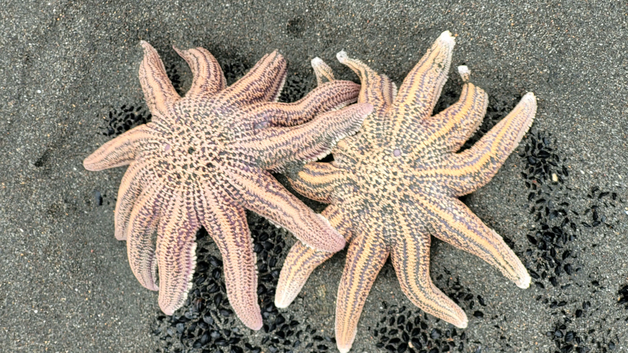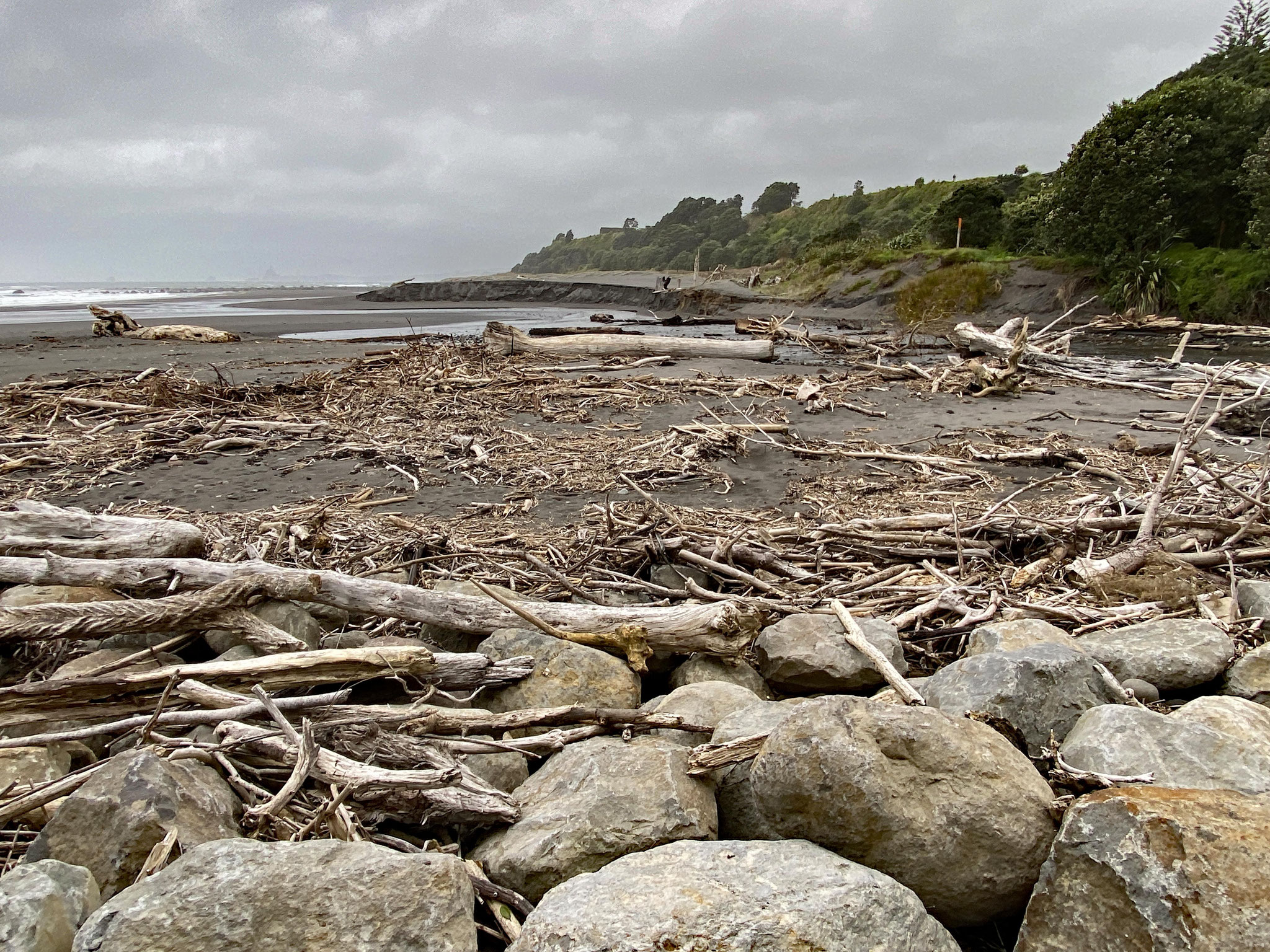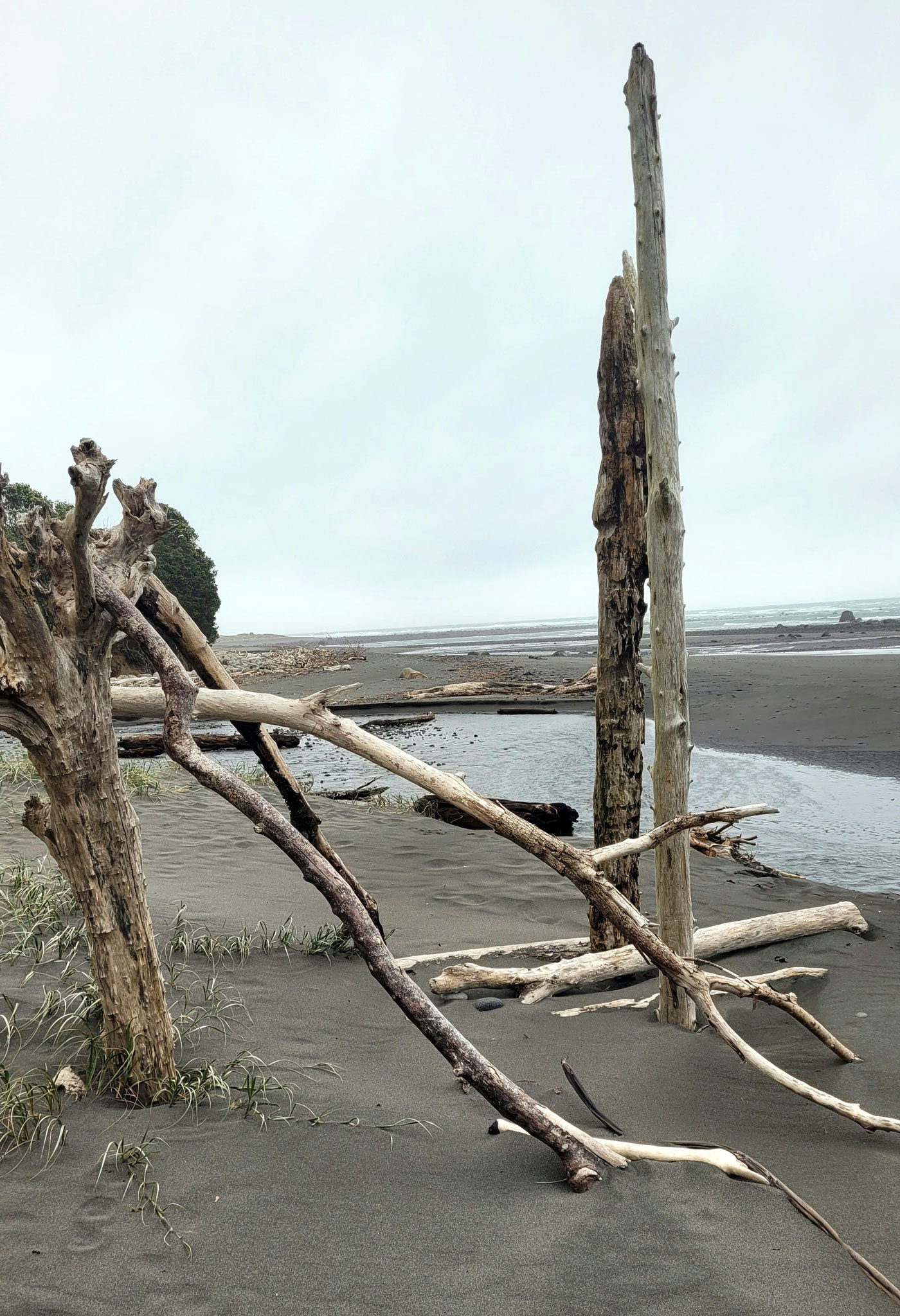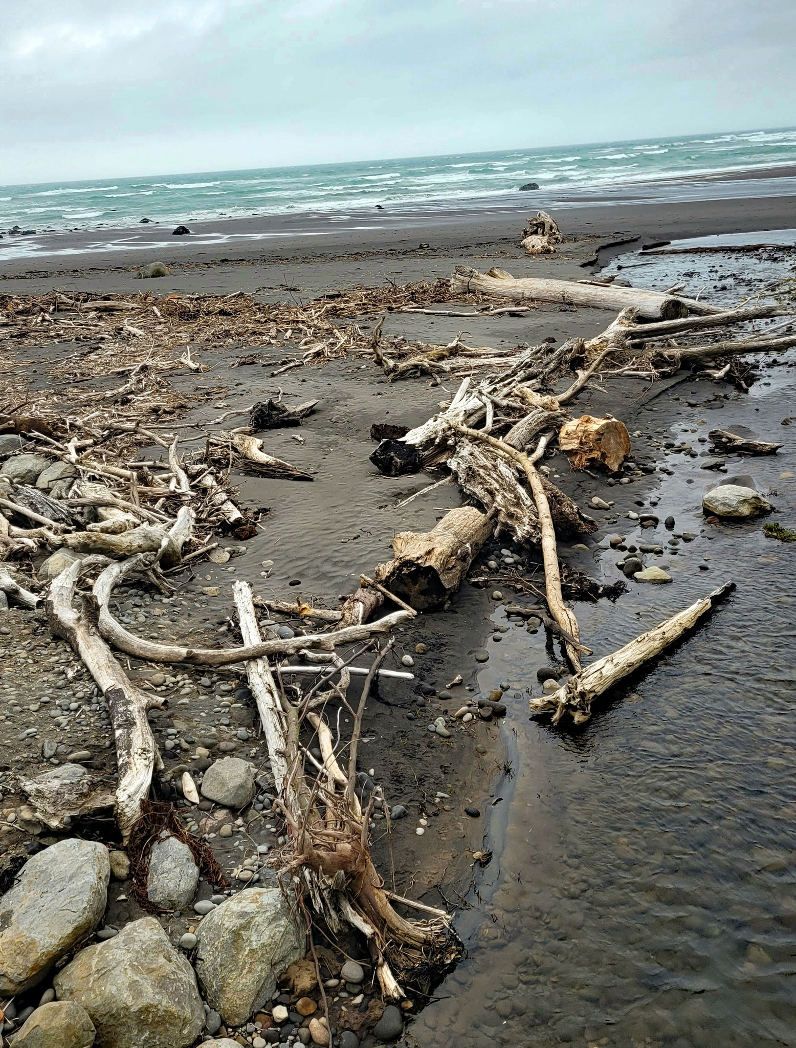 Nach einiger zeit brechen wir auf zum Strand. Natürlich wollen wir uns hier das Meer und den Strand ansehen. Leider ist es immer noch grau, und der Wind weht uns heftig um die Nase. Aber es ist sehr schön hier die wilde Natur zu erleben. Zur Zeit ist gerade Ebbe, so dass wir über den schwarzen Sand bald zum Wasser kommen.